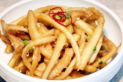 形は高麗人参とも似ていて、味も生では苦く、ちょっとかたい感じも