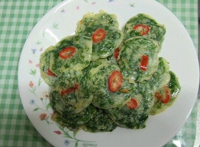 砂糖、粉トウガラシなどを入れて和えて食べます。