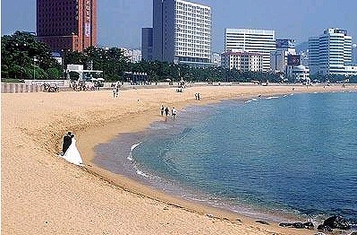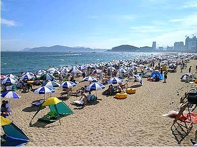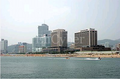 韓国の南側、韓国の第2の都市といえば、「ブサン(釜山)」 です。海に面した港町としてお刺身や海鮮市場などでも有名で、 観光地としてもソウルとは違う雰囲気で人気があります。 今日は、「ブサン」の観光特区である「へウンデ」を紹介します。 「へウンデ」の中でも、海水浴場があるところですね。 「へウンデ海水浴場」は、水深が浅く、波の変化も大きくないため、 海水浴場としてはいい条件を持っているそうです。 そして、宿泊や娯楽施設が備えられており、国内の1級海水浴場 として認められています。更に、温泉まであって、夏には50~60万 人くらいの観光客が集まるそうです。 行きたいですね~~